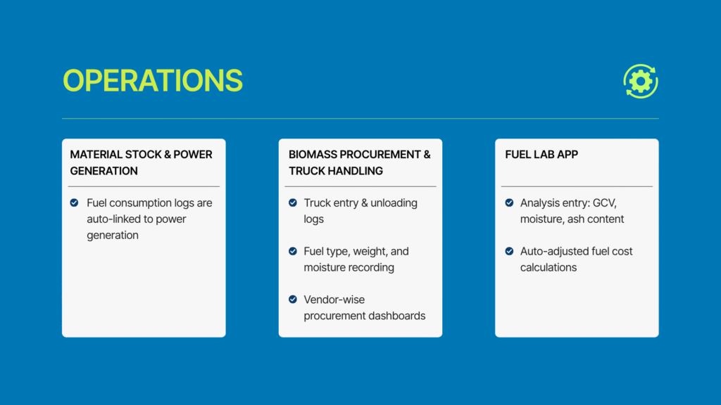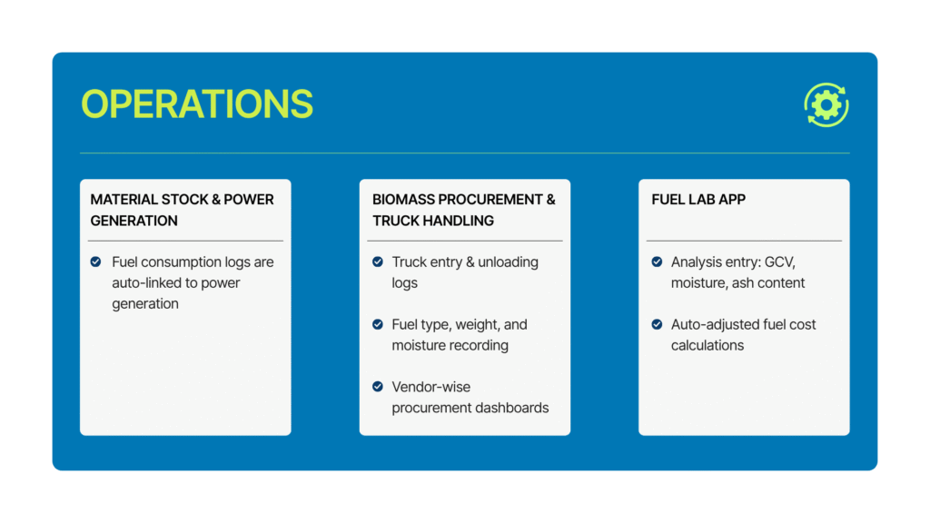 Using just one modular suite designed specifically for biomass-based power plants and waste-to-energy units, target procurement, fuel lab, power generation, payments, and compliance.